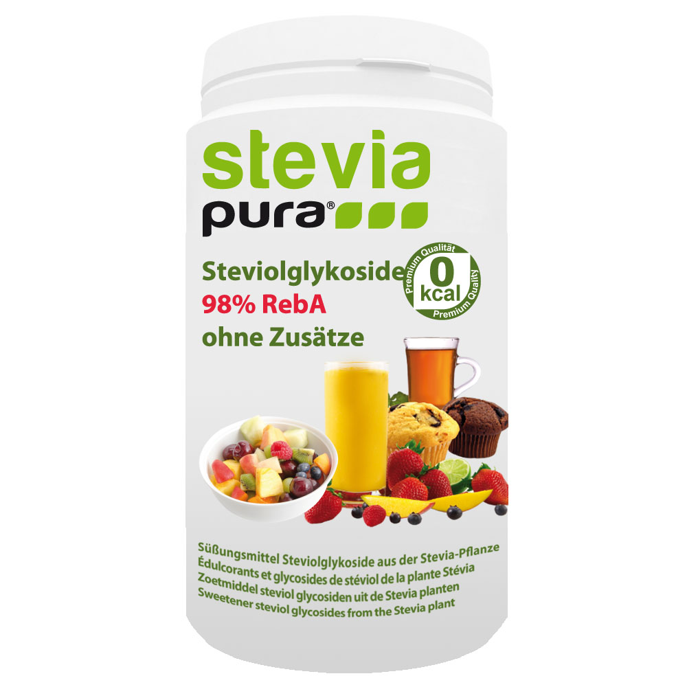 From the leaves of the plant Stevia rebaudiana are the Steviolglycosides extracted. These are between 200-450 times sweeter than sugar and have no calories.